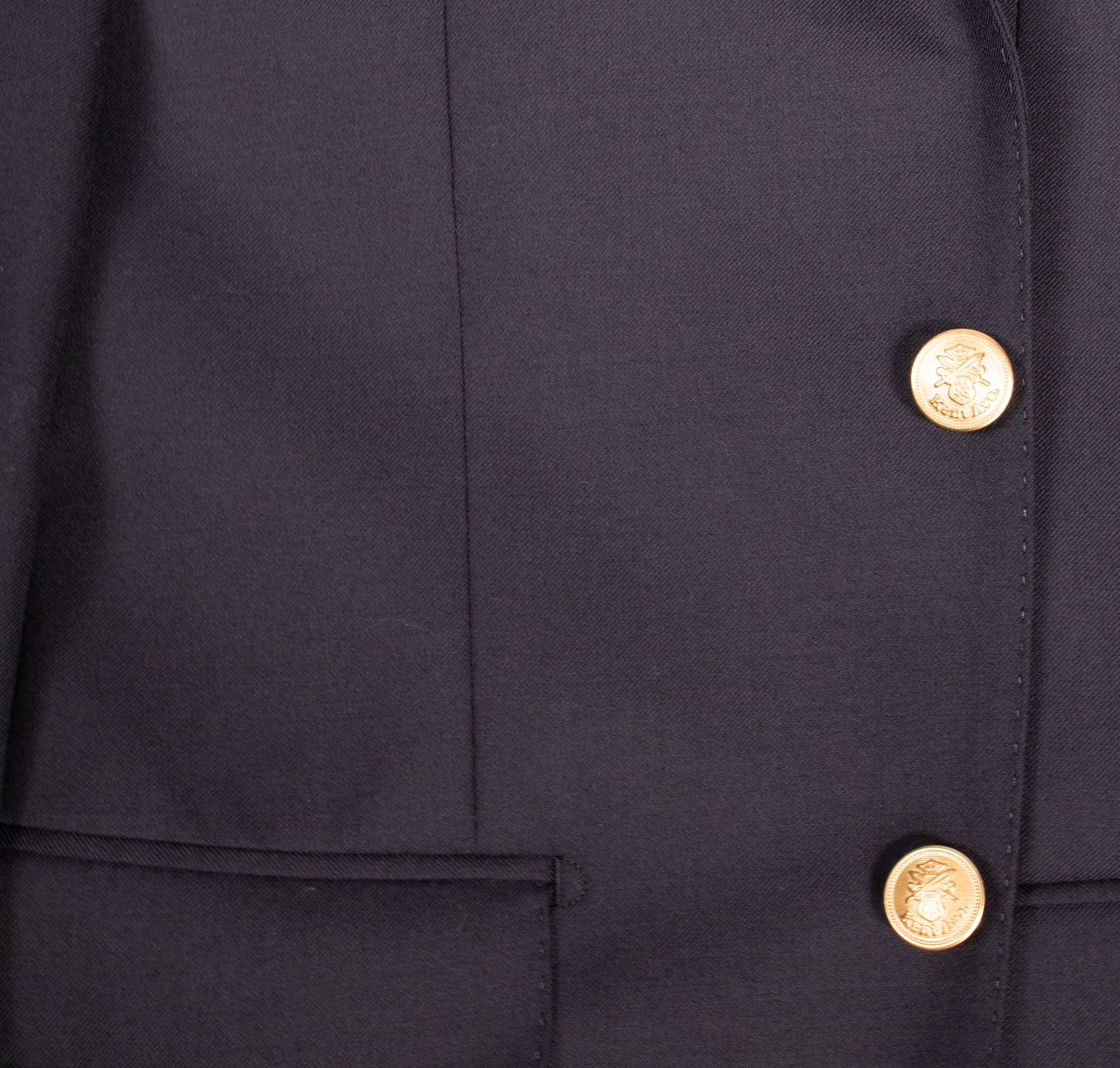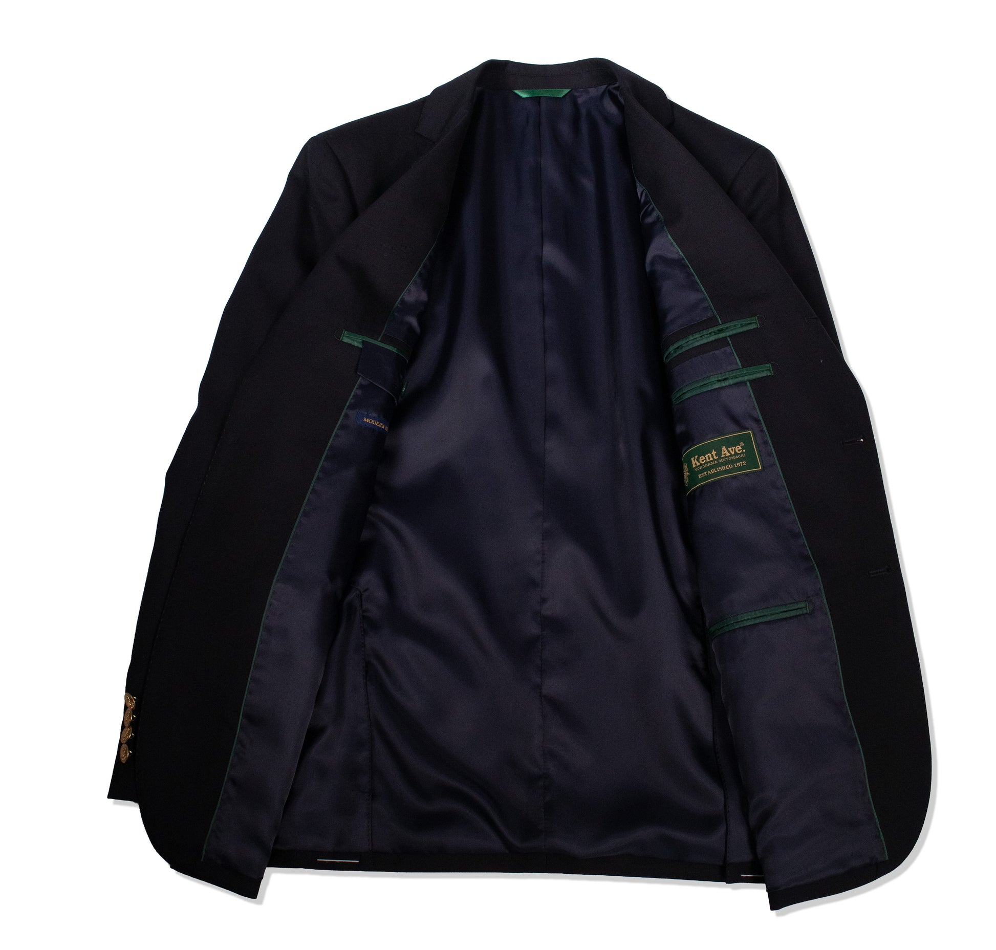 ウエストを綺麗に絞り込んだXラインと、前裾が大きく開いたカッタウェイフロント、サイドベンツなどのディテールがブリティッシュムードを更に引き立てます。腰のフラップポケットの両サイドはD管止め。