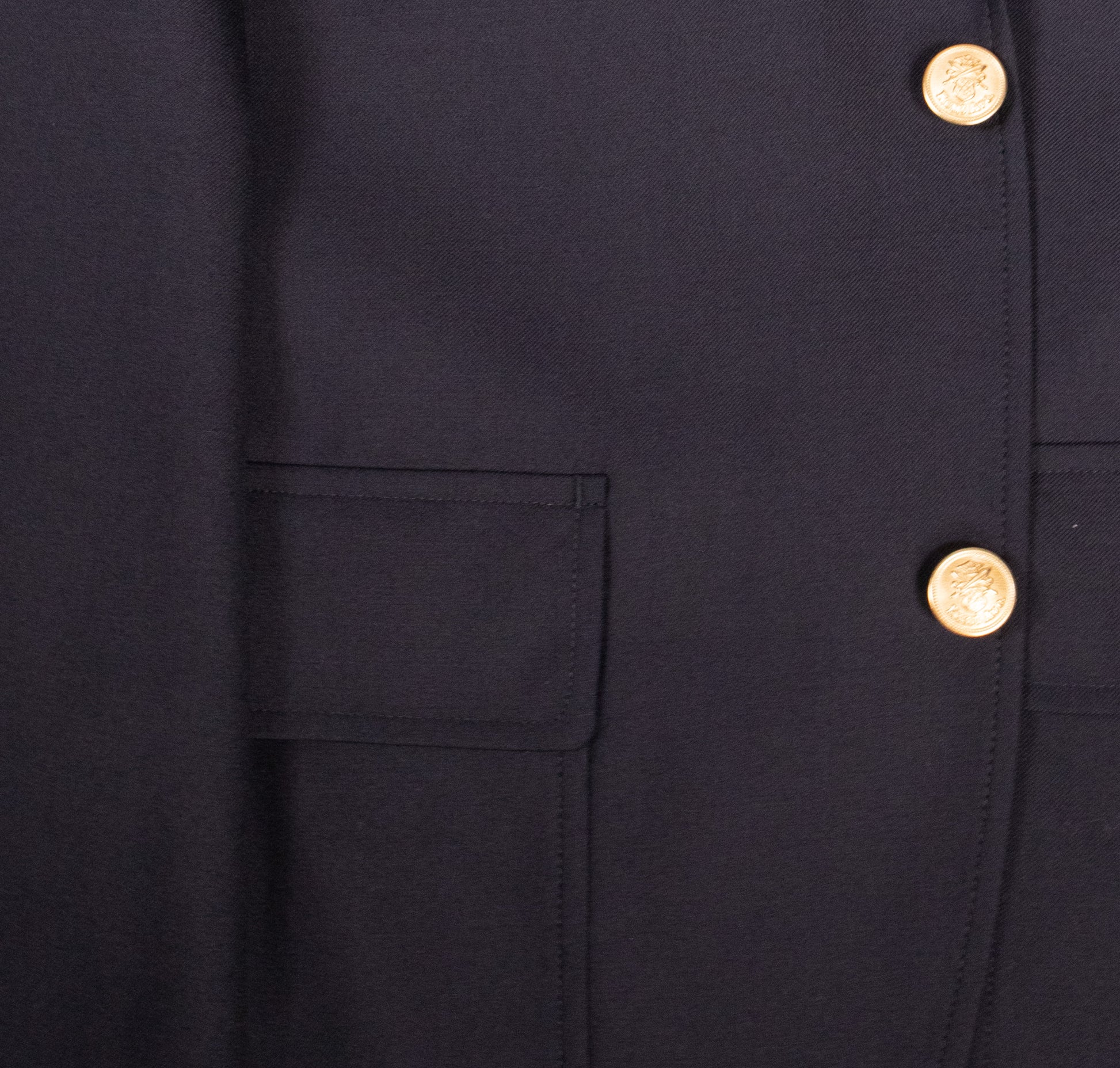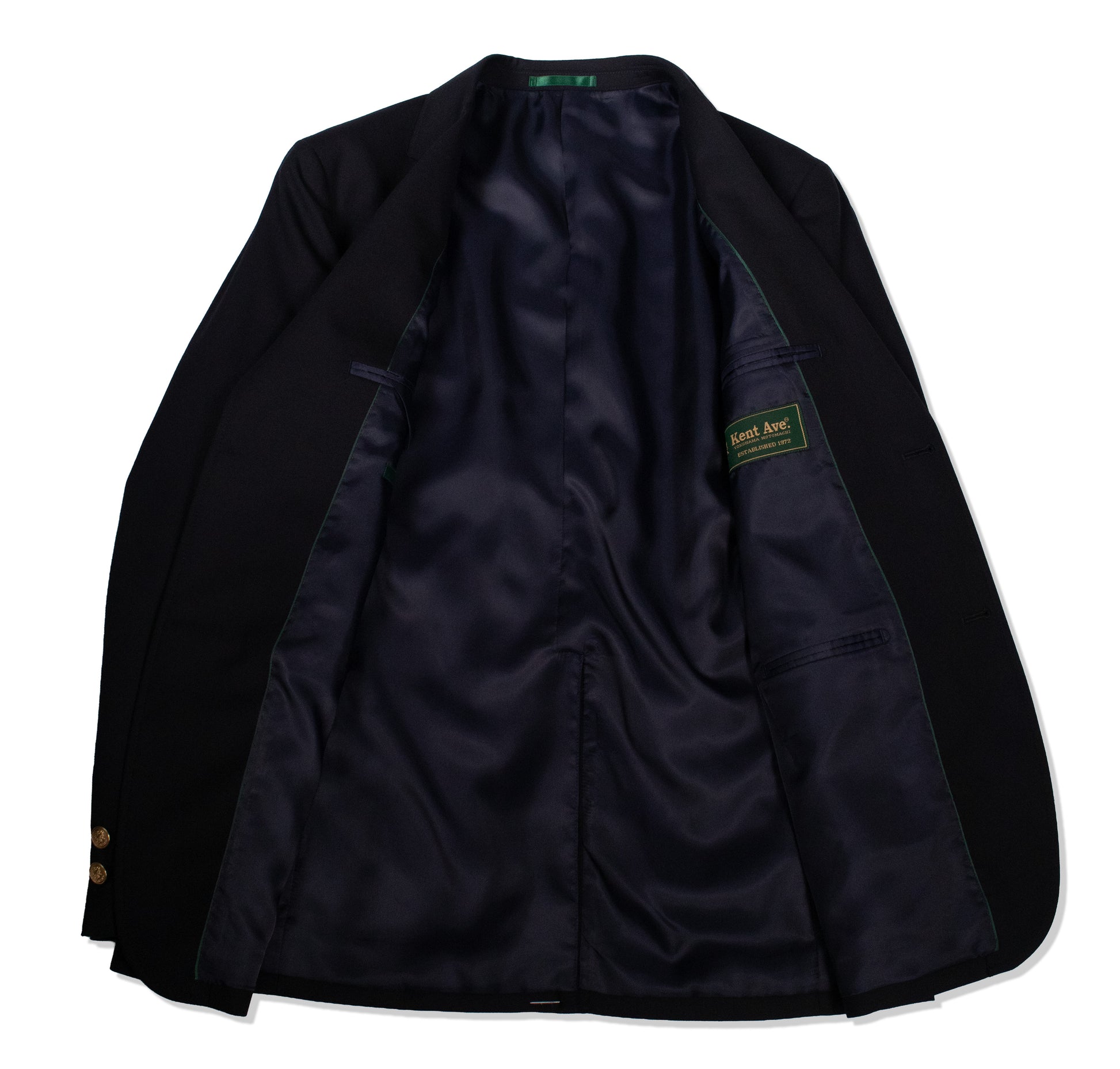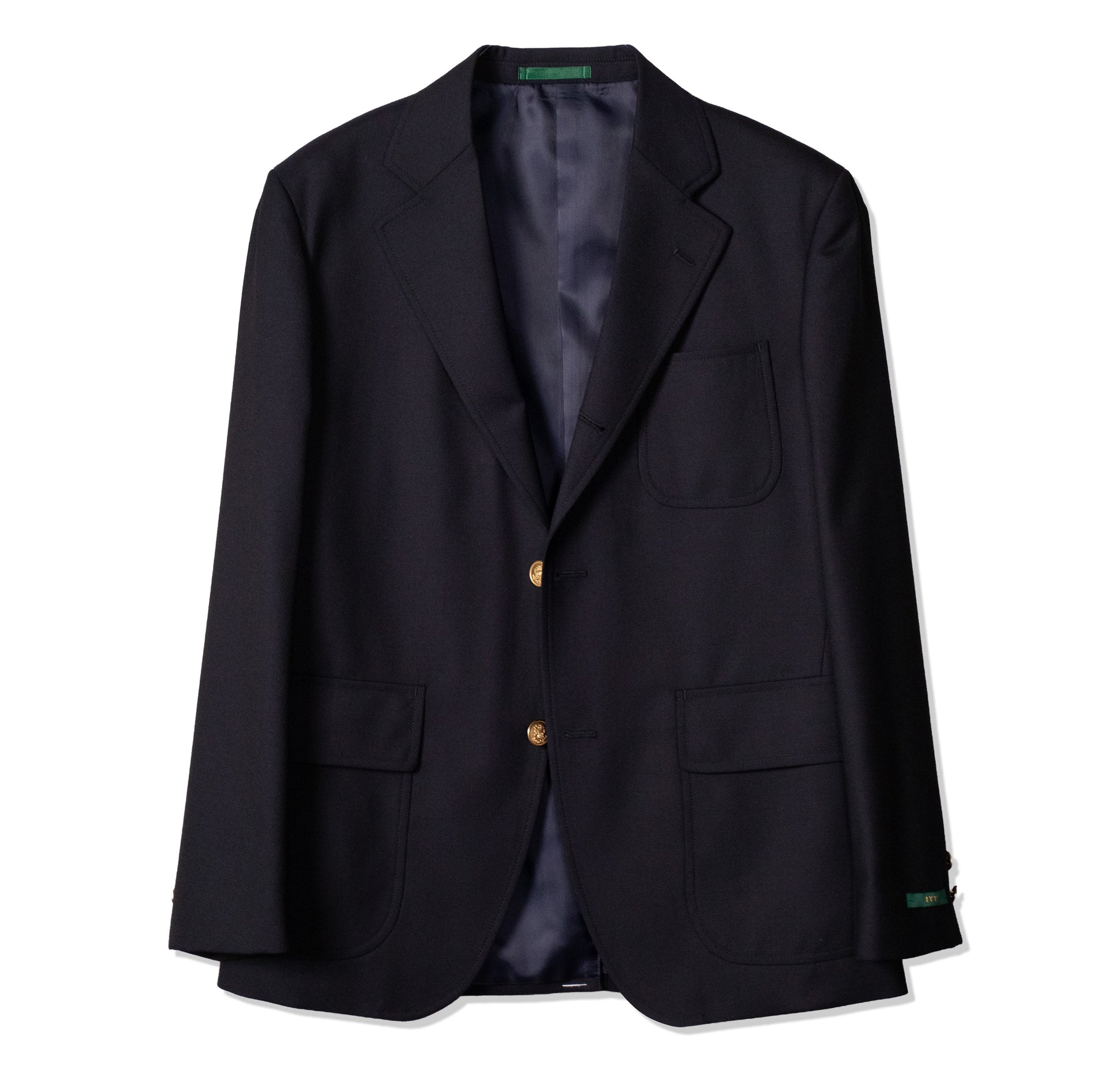 アメリカントラディショナルの基本アイテムである、ネイビーのIVYブレザーは胸ダーツを持たないボックス型のシルエットにセンターフックベント、5ミリ巾のミシンステッチや、パッチ&フラップの腰ポケットなどが仕様になります。